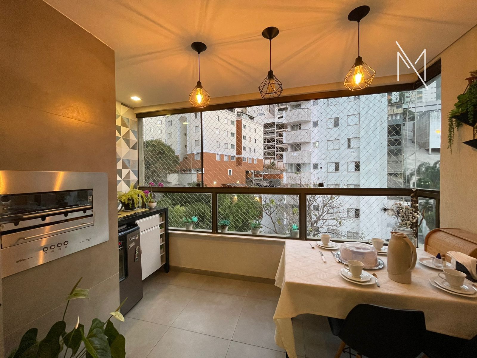 Sala para dois ambientes. Varanda gourmet com vista definitiva. Três quartos, sendo um suíte e um com armário. Cozinha americana com despensa. Área de serviço independente. Duas vagas de garagem.