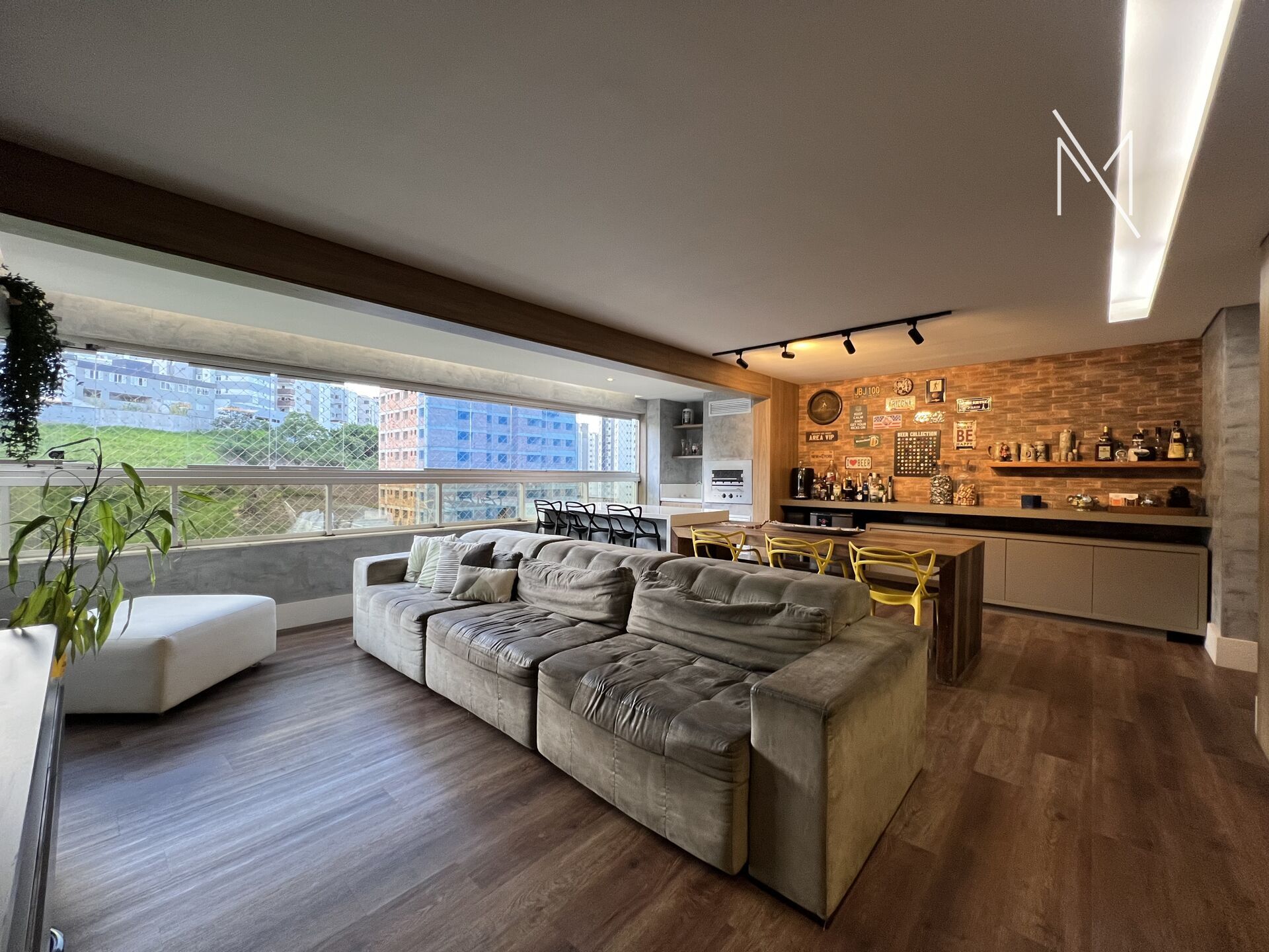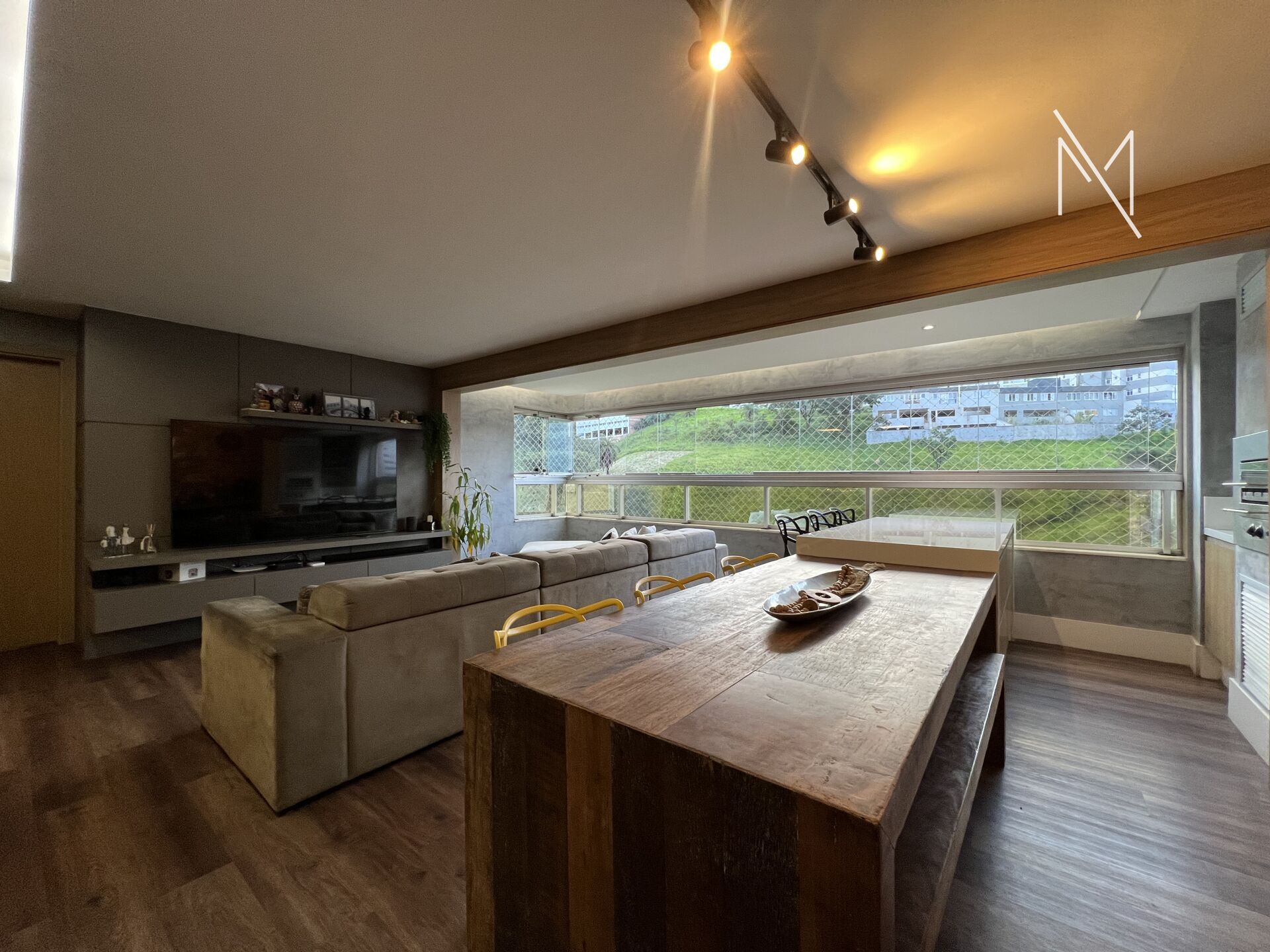Sala ampla para três ambientes,