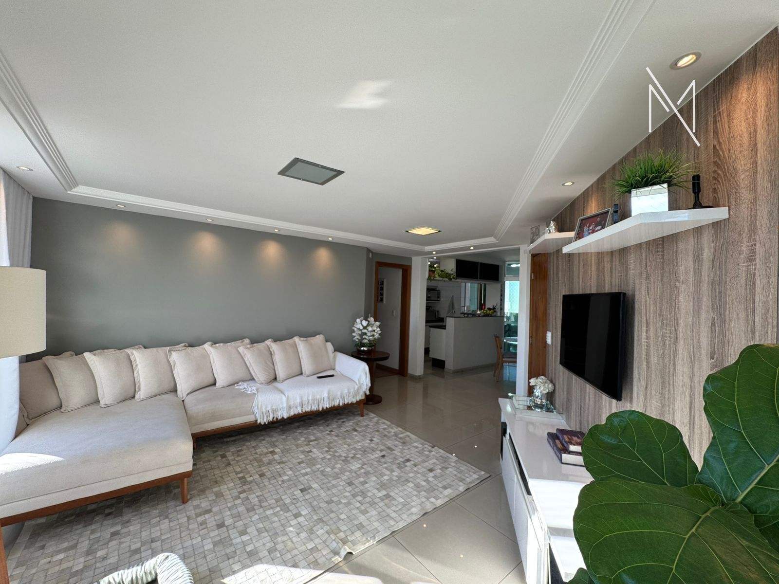 O apartamento em si é espaçoso, claro, arejado e com uma vista deslumbrante. Sua sala para 2 ambientes possui teto rebaixado e varanda, ideal para momentos de relaxamento. A cozinha estilo americana é equipada com armários planejados e bancada em granito, garantindo praticidade e modernidade.