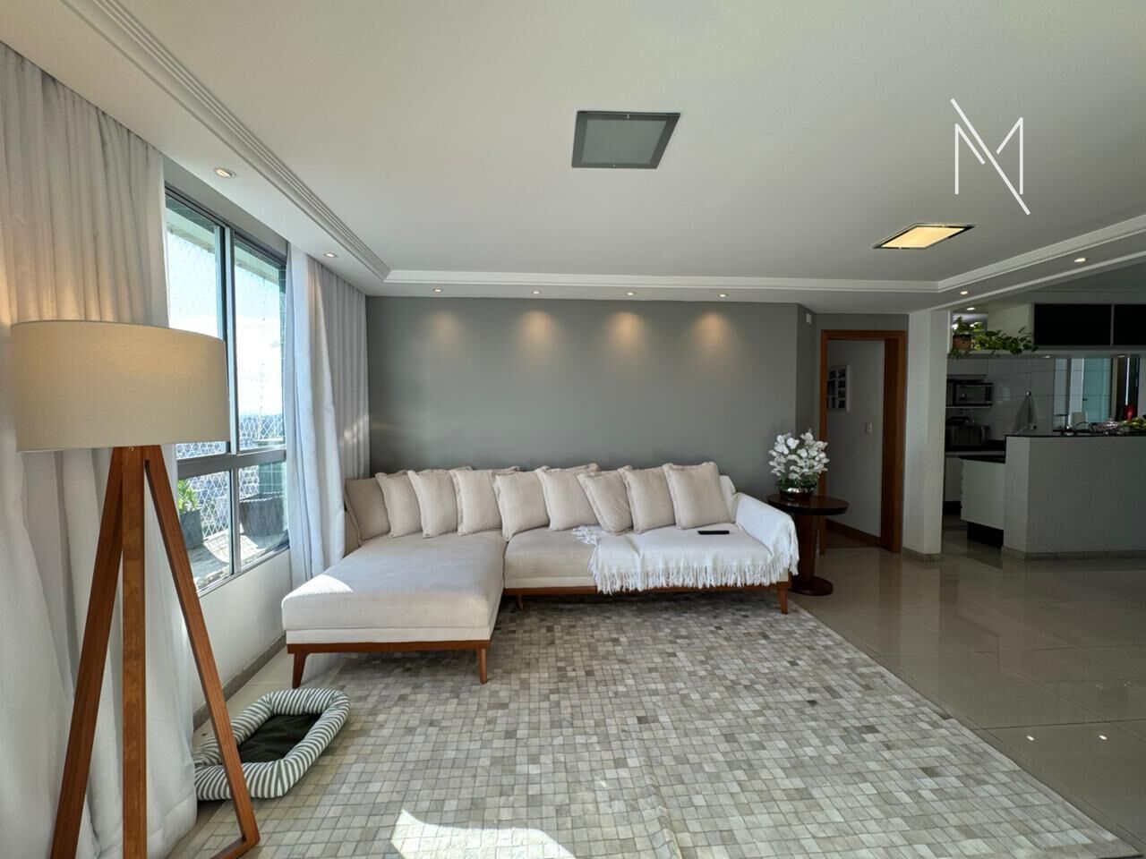 Com 4 quartos, sendo 1 suíte espaçosa, o apartamento ainda conta com banheiros com bancadas em granito, box e espelho. A área de serviços é independente, com fechamento em vidro e banheiro de serviços, ideal para manter a organização do lar.