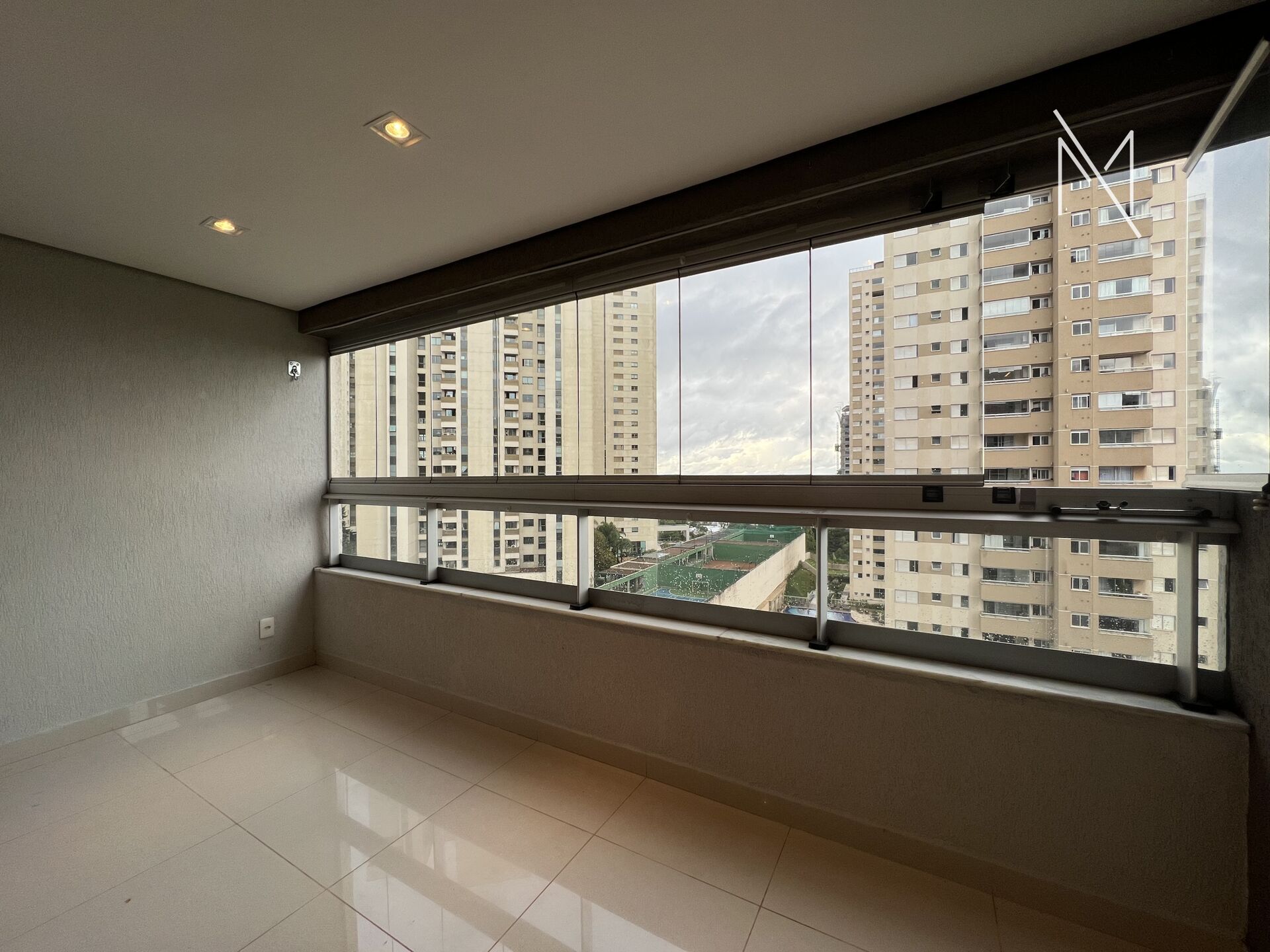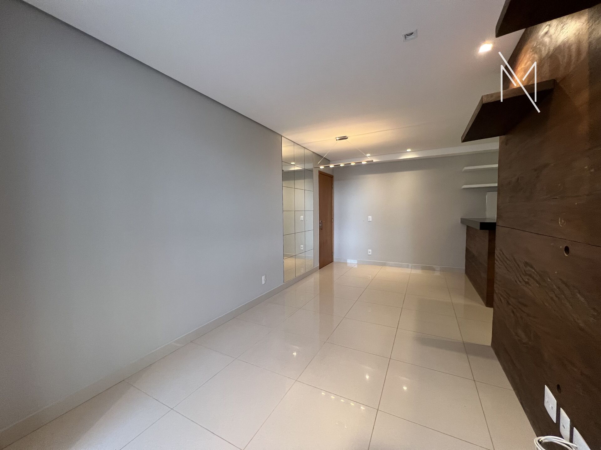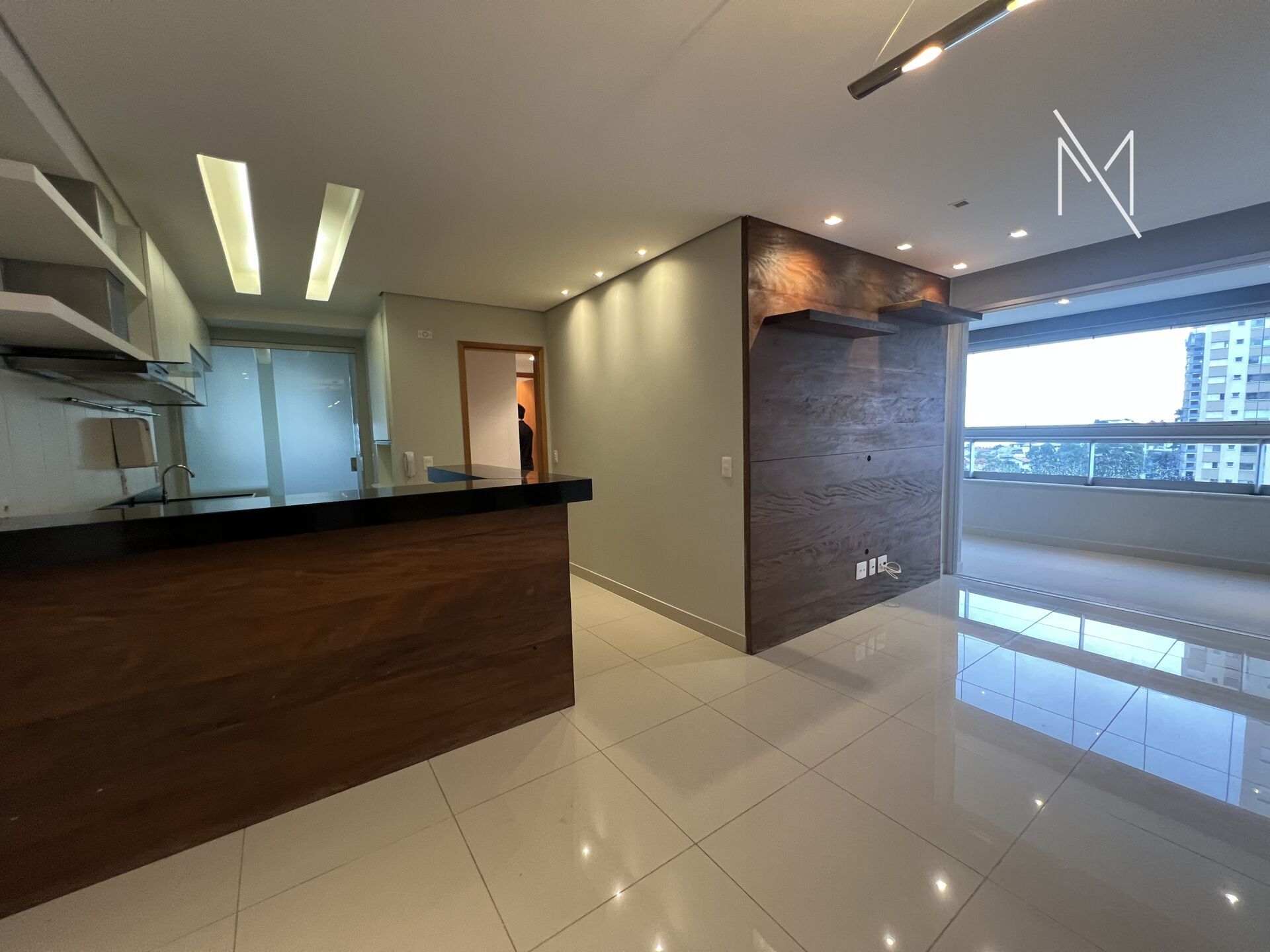 Apartamento com sala para dois ambientes, varanda, três quartos sendo um suíte, banheiro social, cozinha estilo americana e area de serviço.