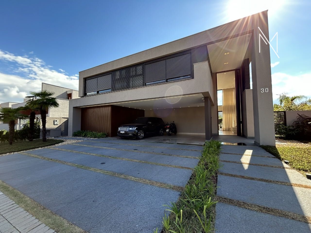 Linda casa com projeto moderno e sofisticado, construída em terreno de 680m², próxima à portaria, com acabamento de alto padrão e infraestrutura completa.